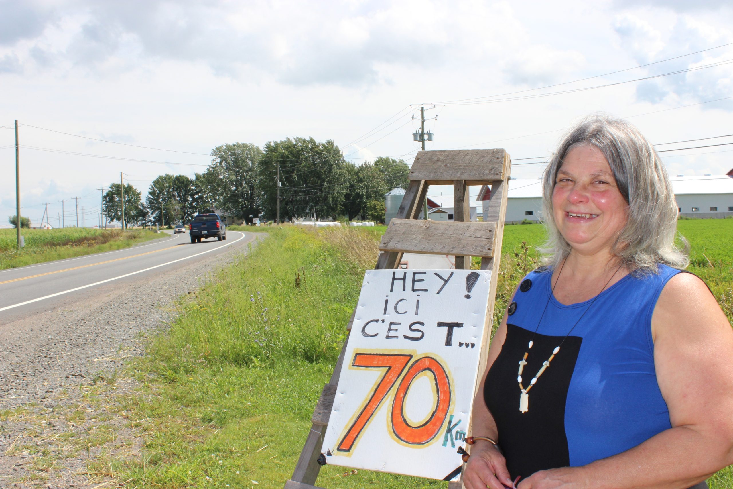 Les résidents ont décidé de rappeler eux-mêmes aux usagers de la route provinciale la limite de vitesse de 70 km/h en installant plus d’une quinzaine d’affiches fabriquées à la main de chaque côté des voies de circulation. «Les gens du secteur sont excédés par les véhicules qui circulent à vive allure sans respecter la limite de vitesse. Et, ce n’est pas une mauvaise lecture de la vitesse qu’on fait!», jure Johane Garneau, instigatrice de cette mobilisation.