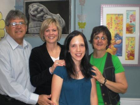 Les employés du Centre de santé et de services sociaux de Maskinongé (CSSSM), par le biais de la campagne interne de leur Fondation, soutiennent le développement du Centre en endossant le projet d’offrir gratuitement des suppléments d’Omega-3 aux femmes enceintes qui ne consomment pas de poissons gras. En effet, les experts s’entendent que des apports réguliers d’oméga-3 de sources marines permettent aux femmes enceintes et en âge de procréer de fournir des nutriments importants au fœtus en développement. Effectivement, plusieurs études ont révélé une relation positive entre une consommation notable de poisson gras et de meilleurs indices de développement neurologique chez l’enfant. À ce jour, il est donc juste de croire qu’environ 15 à 25 femmes enceintes pourraient bénéficier de ce programme annuellement. Sur la photo, on retrouve Jean-Yves Tremblay, coordonnateur de la campagne interne, Geneviève Péloquin, directrice générale de la Fondation CSSSM, Anne-Marie Couture, initiatrice de ce projet de financement faisant partie de l’équipe Enfance-jeunesse-famille et santé mentale entourant Hélène Beaumier, enceinte de 15 semaines qui consomme des suppléments d’oméga-3 pour le développement de son fœtus. Photo, gracieuseté