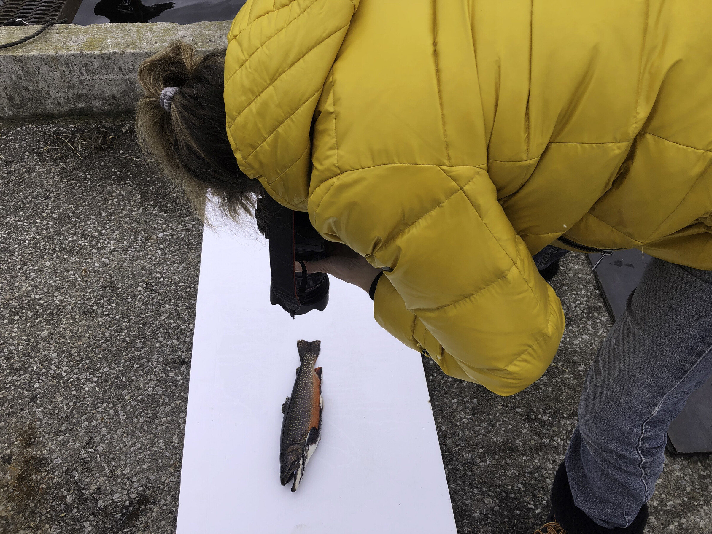 Le propriétaire de la pisciculture lui a ouvert ses portes et lui a sorti des truites pour que Catherine Rondeau puisse les photographier. “Je me suis ensuite amusée à jumeler ça avec les photographies et des gens. C’est là que la magie opère.”