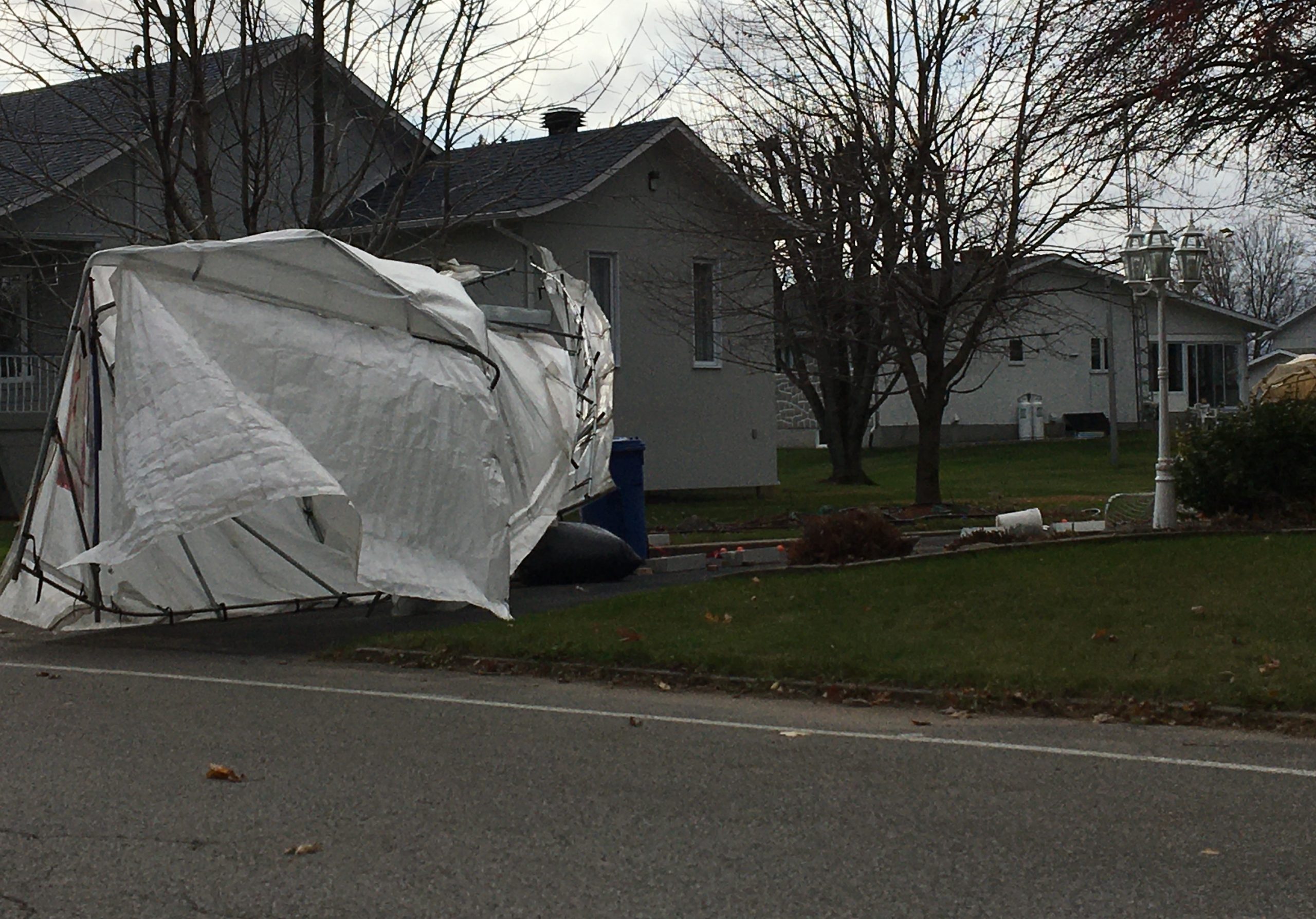 La victime aurait tenté d’attraper la structure de son voisin, qui se déplaçait vers une autre maison. Le propriétaire a pu maîtriser l’abri et le sécuriser en l’attachant à un arbre avant de retrouver son voisin inconscient au sol.
