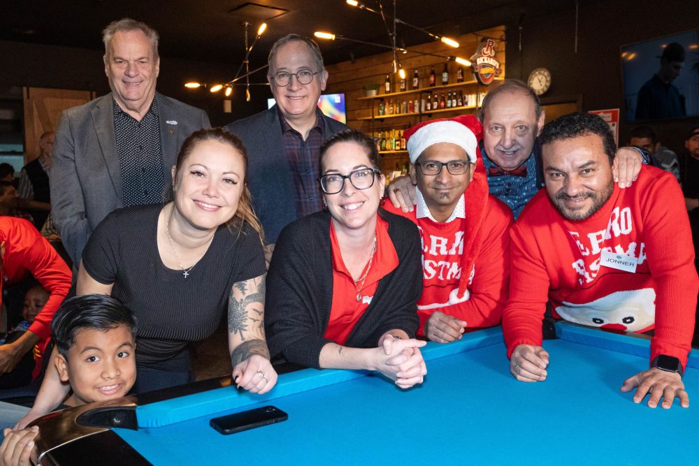 Les 300 participants constituent un record de participation pour partager les joies de la fête de Noël. Les familles et les enfants avaient des étoiles dans les yeux lorsque le Père Noël et ses lutins ont distribué des cadeaux. Puis, tous ont apprécié jouer aux quilles et au billard dans la bonne humeur par la suite.
