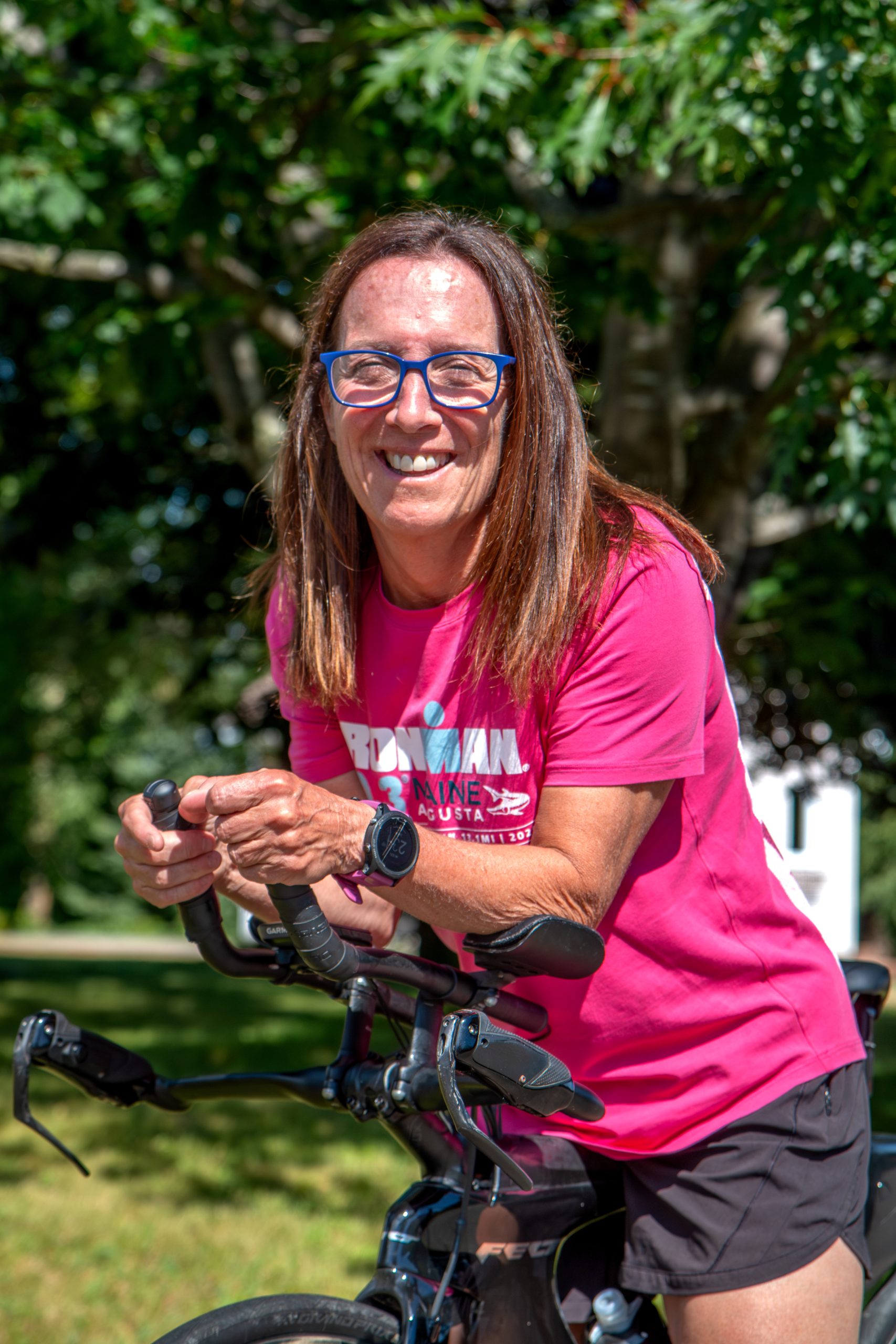 Le triathlon, lui, s’est imposé par ses enfants. Son fils se met à la natation, au vélo et à la course. Elle l’inscrit à un premier triathlon et il ira jusqu’à deux championnats du monde. « Il m’a dit : Maman, tu es bonne en vélo, tu es bonne en course, il ne te manque que la natation. Mais moi, je ne savais pas nager du tout », se remémore-t-elle en riant. À 54 ans, elle apprend donc à mettre la tête sous l’eau. Avec une simple nouille de piscine, elle se lance. « J’ai rushé, mais j’ai appris », admet-elle.